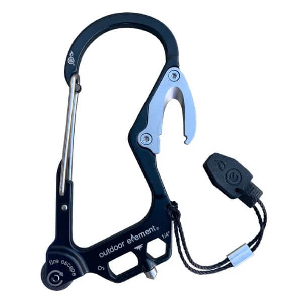 Fire Escape is a first-responder inspired evolution of the award-winning Firebiner multitool carabiner. It is made from super strong stainless steel and has our patented EverSpark fire-starting system, along with a seatbelt cutter (with rubber cover), a carbide-tipped glass breaker, an O2 and hex wrench which double as hang slots, and a bottle opener.