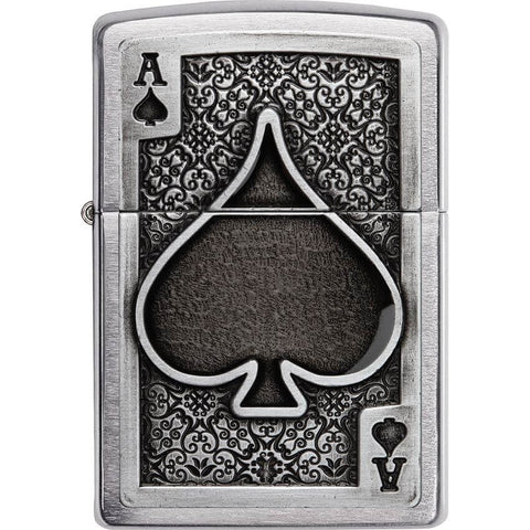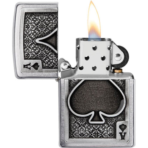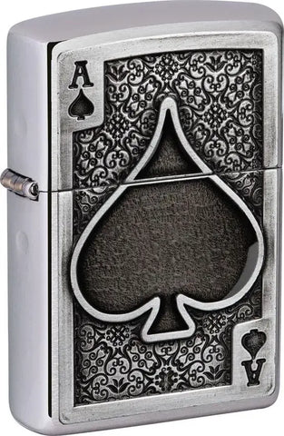 This High Polish Chrome windproof lighter has the ace of spades casted imaged on it. Comes packaged in a gift box. For optimal performance, fill with Zippo lighter fuel.