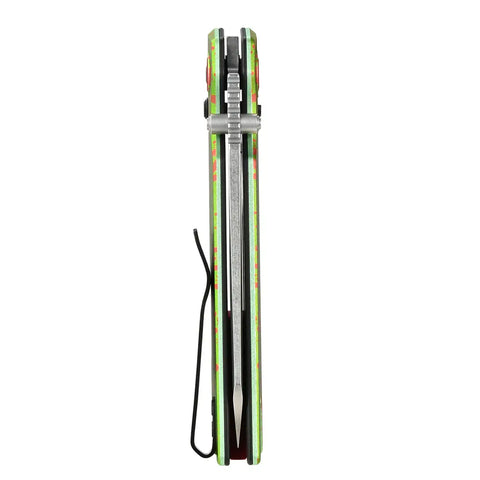 Using the latest full-color oxidation process, the pattern is bright and realistic, and it is the world's first rail lock folding knife with this process handle.