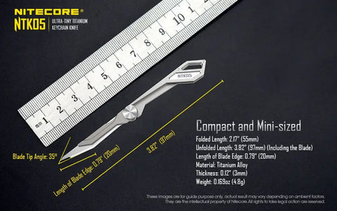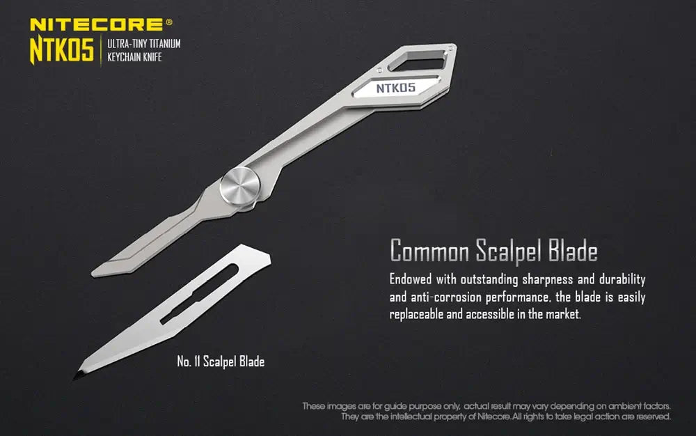 When precision matters, there is the NITECORE NTK05 titanium keychain scalpel blade knife. This exquisitely CNC crafted titanium scalpel blade is made of TC4 aerospace grade titanium; it offers incredibly high strength, durability, low density and corrosion resistance.