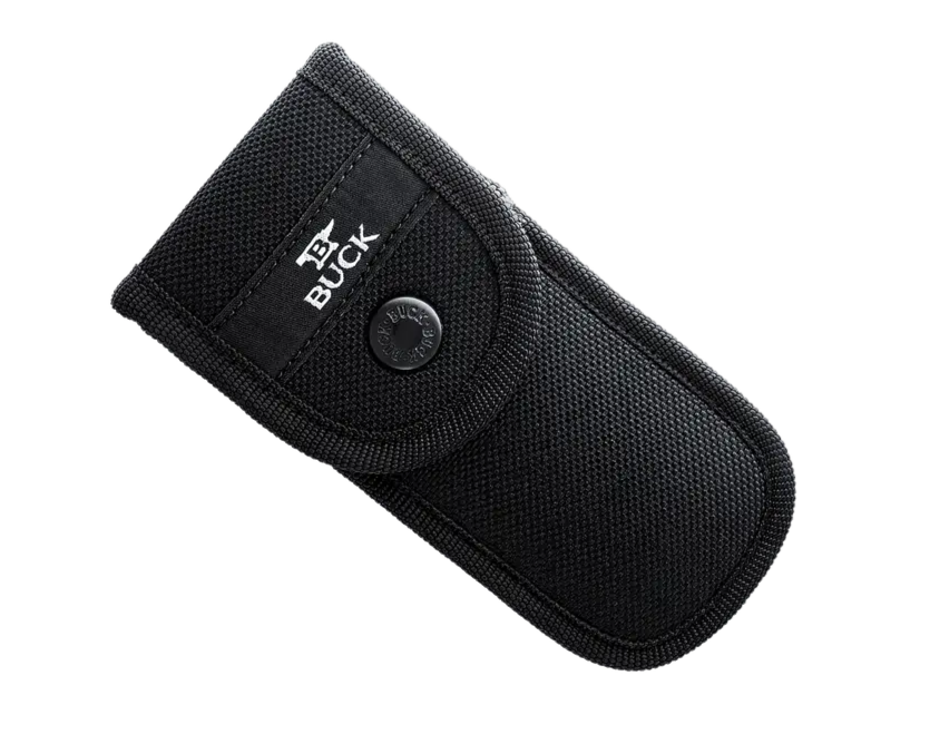 Black polyester sheath with Buck logo. For Model 110 Folding Hunter or other 5" closed lockbacks.
