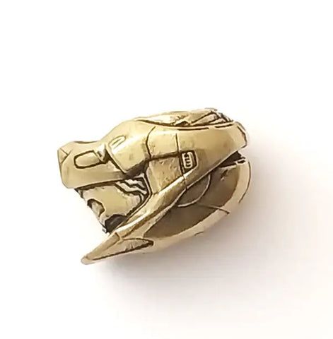 Add some rugged character to your gear with this detailed motorcycle-style gamer helmet bead. Crafted from antiqued brass, this accessory measures approximately 1" x 0.6" x 0.6" and features a single through-hole sized to fit 550 paracord and smaller. The top opening measures 0.25", while the bottom hole spans roughly 0.75" x 0.4". Great for customizing lanyards, zipper pulls, keychains, and more. Bulk packed.