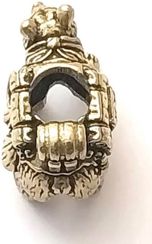 Built from antiqued brass, this rugged bear-shaped bead adds personality and charm to your knife lanyard or gear setup. Measures approximately 0.8" x 0.4" x 0.6" with a single through-hole designed to fit 550 paracord and smaller. Top hole is 0.25"; bottom opening is roughly 0.5" x 0.25". Perfect for customizing zipper pulls, packs, lanyards, and more. Bulk packed.