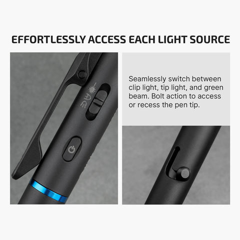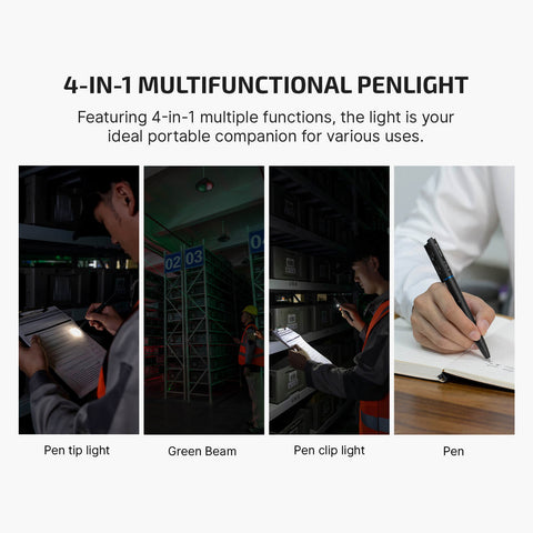 - 4-in-1 Multifunctional Penlight: The clip features a 120-lumen white light, a two-stage red light for night vision, and red SOS mode for emergencies. It also features a soft tip light for writing in the dark, and a precise Class 3R green laser pointer with two brightness levels for clear, confident presentations.
